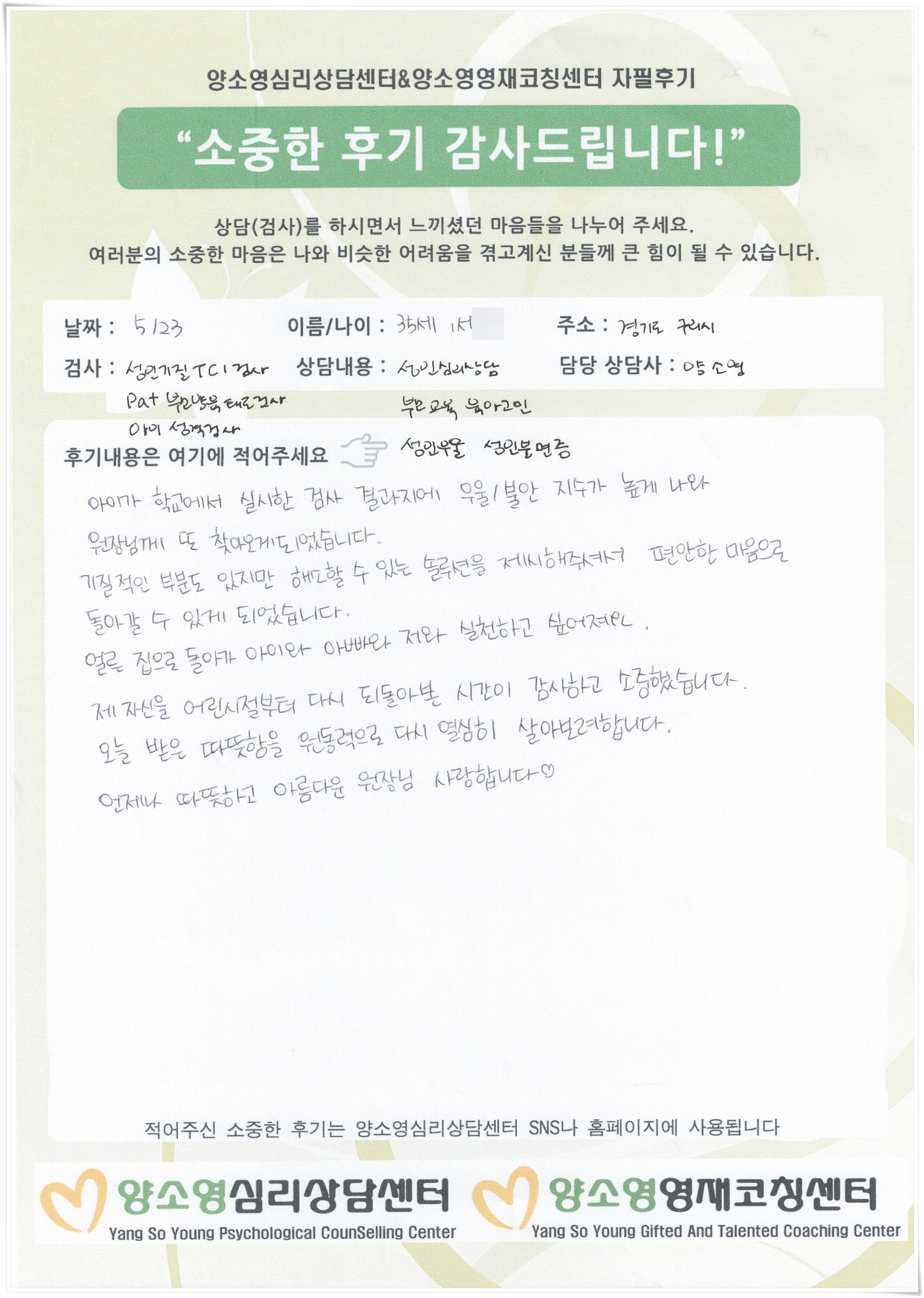 [2024.5.23] 성인심리상담 / TCI,부모양육,아이성격검사
