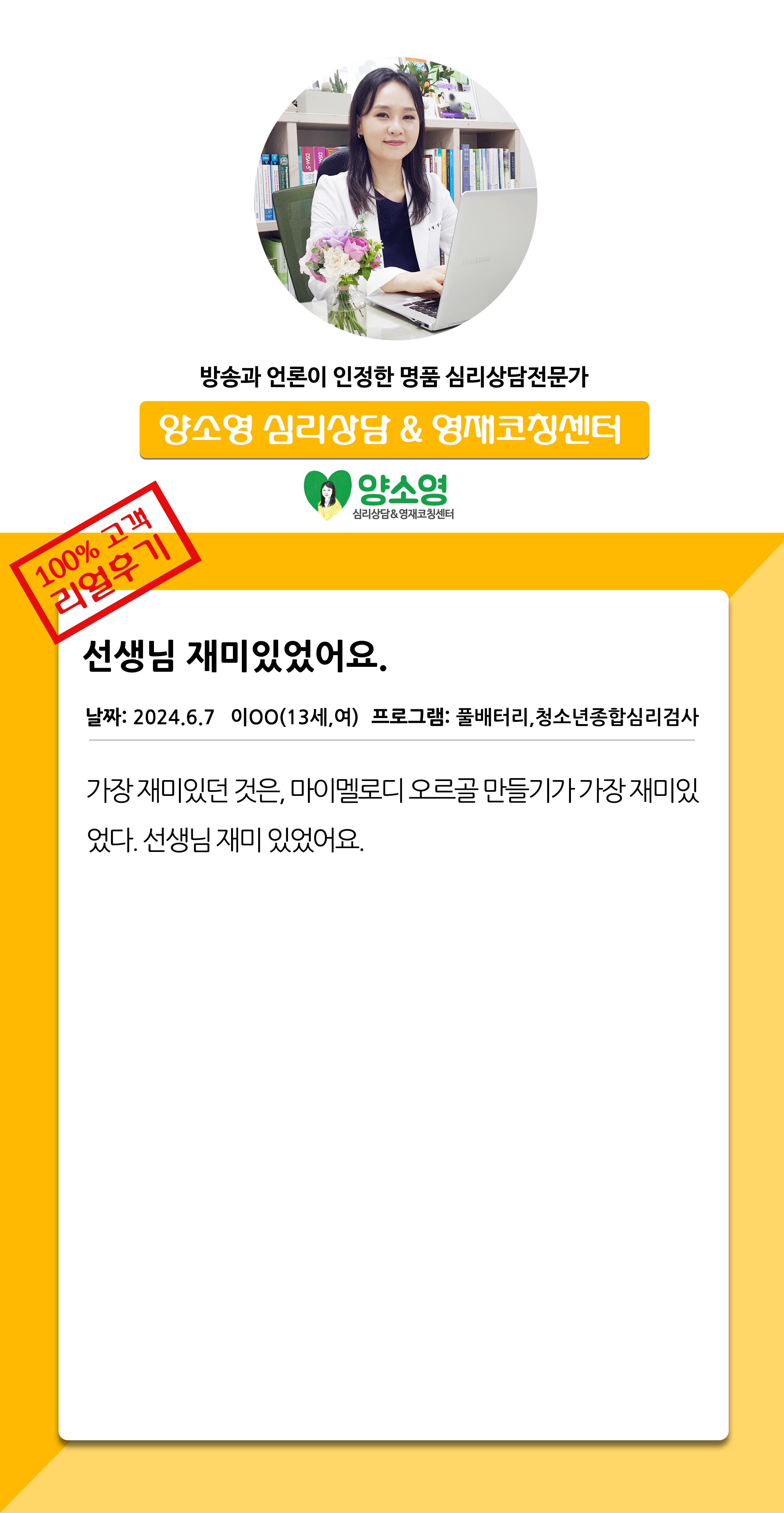 양소영 심리상담센터를 먼저 경험하신
