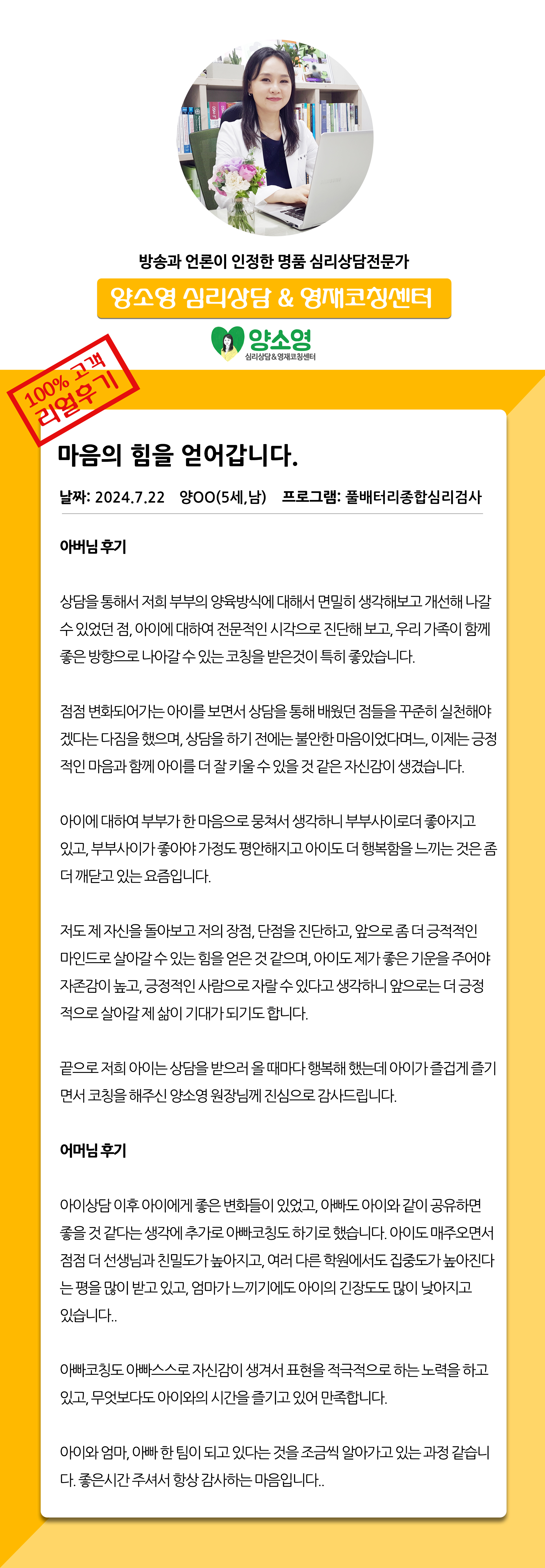 양소영 심리상담센터를 먼저 경험하신