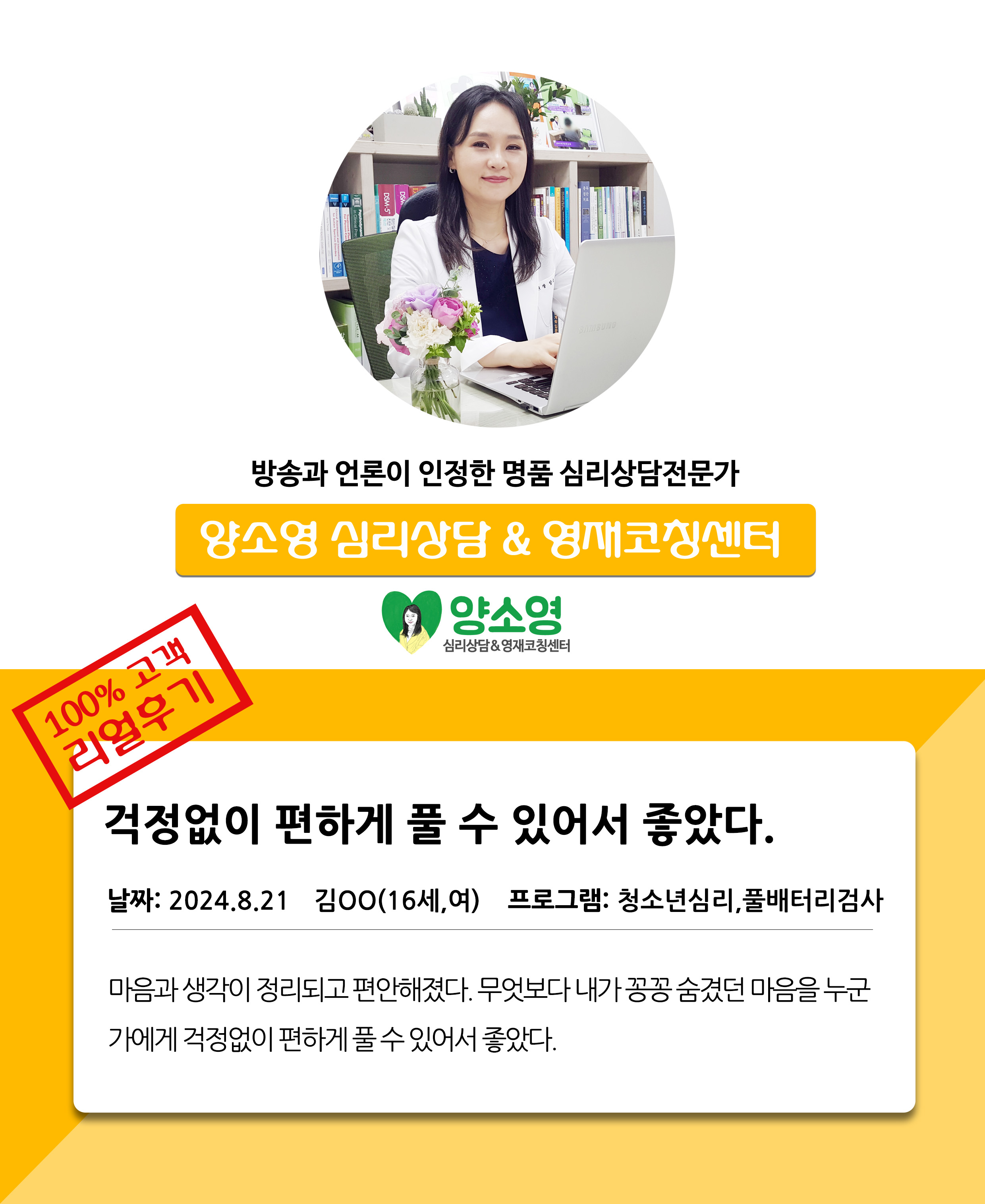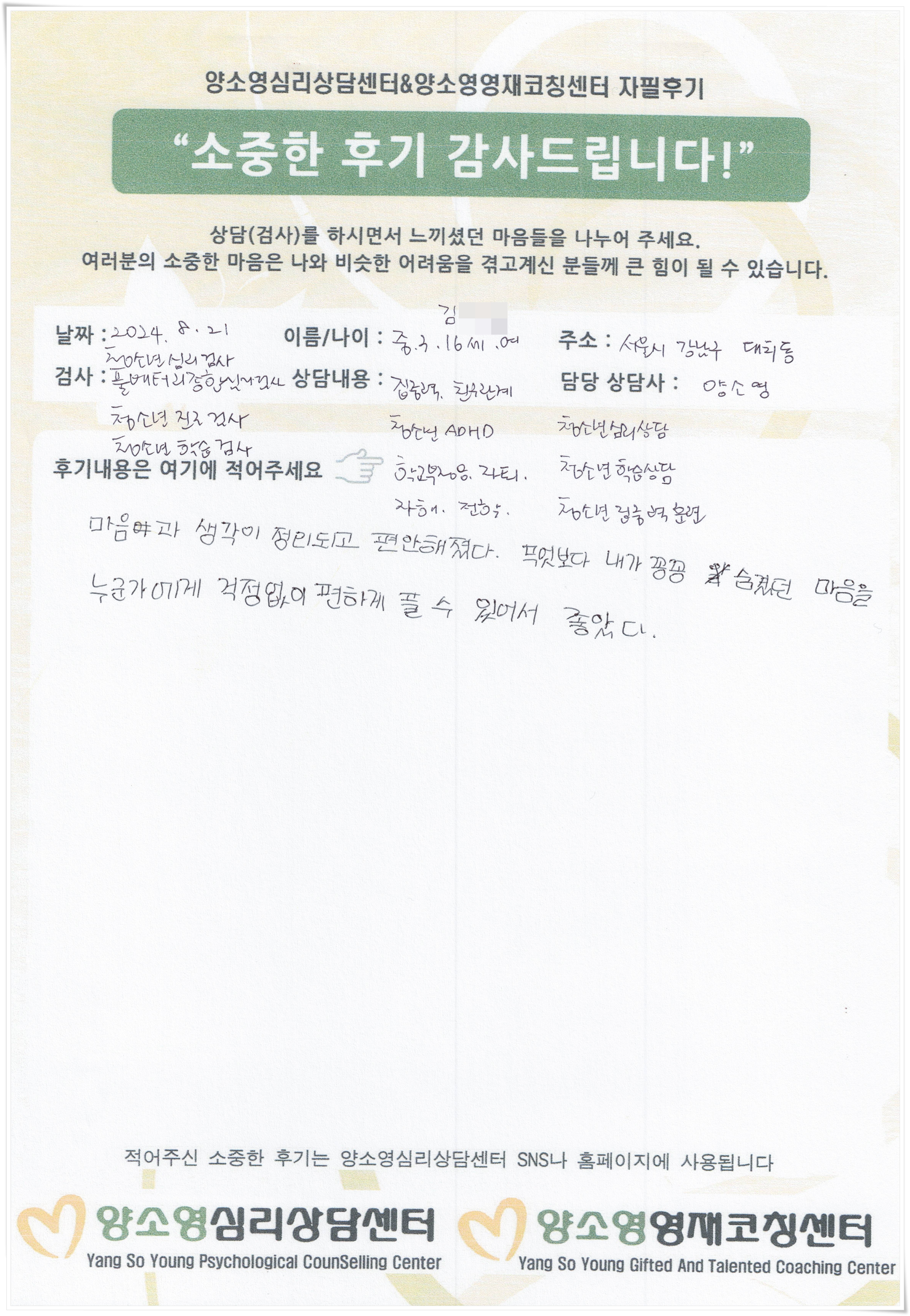 양소영 심리상담센터를 먼저 경험하신