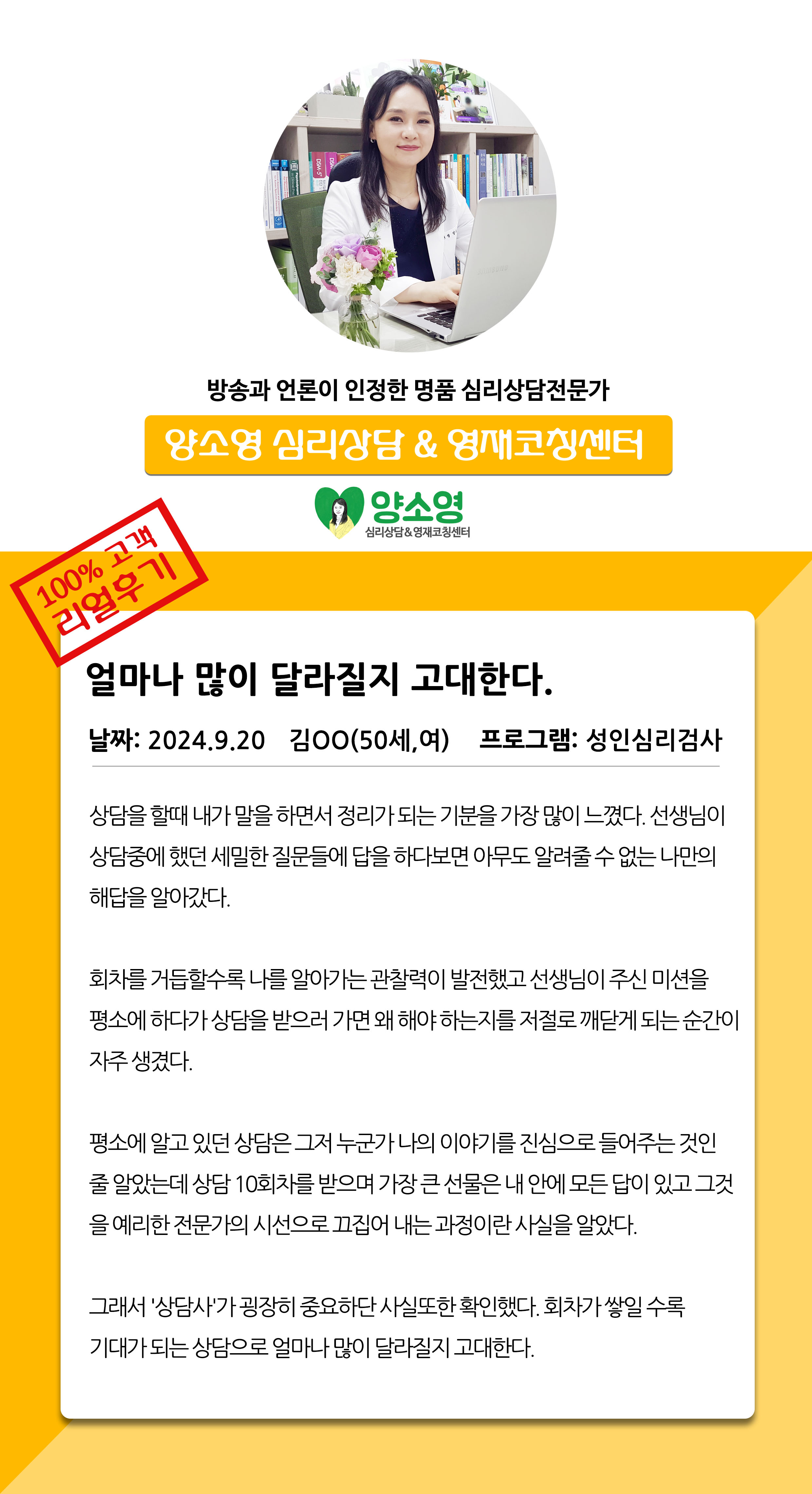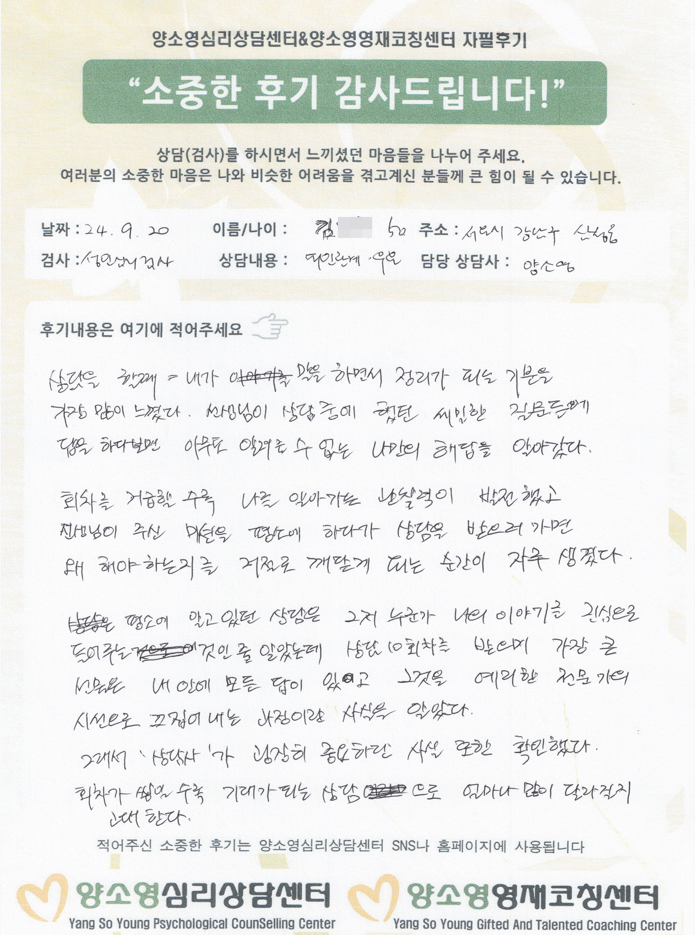 양소영 심리상담센터를 먼저 경험하신
