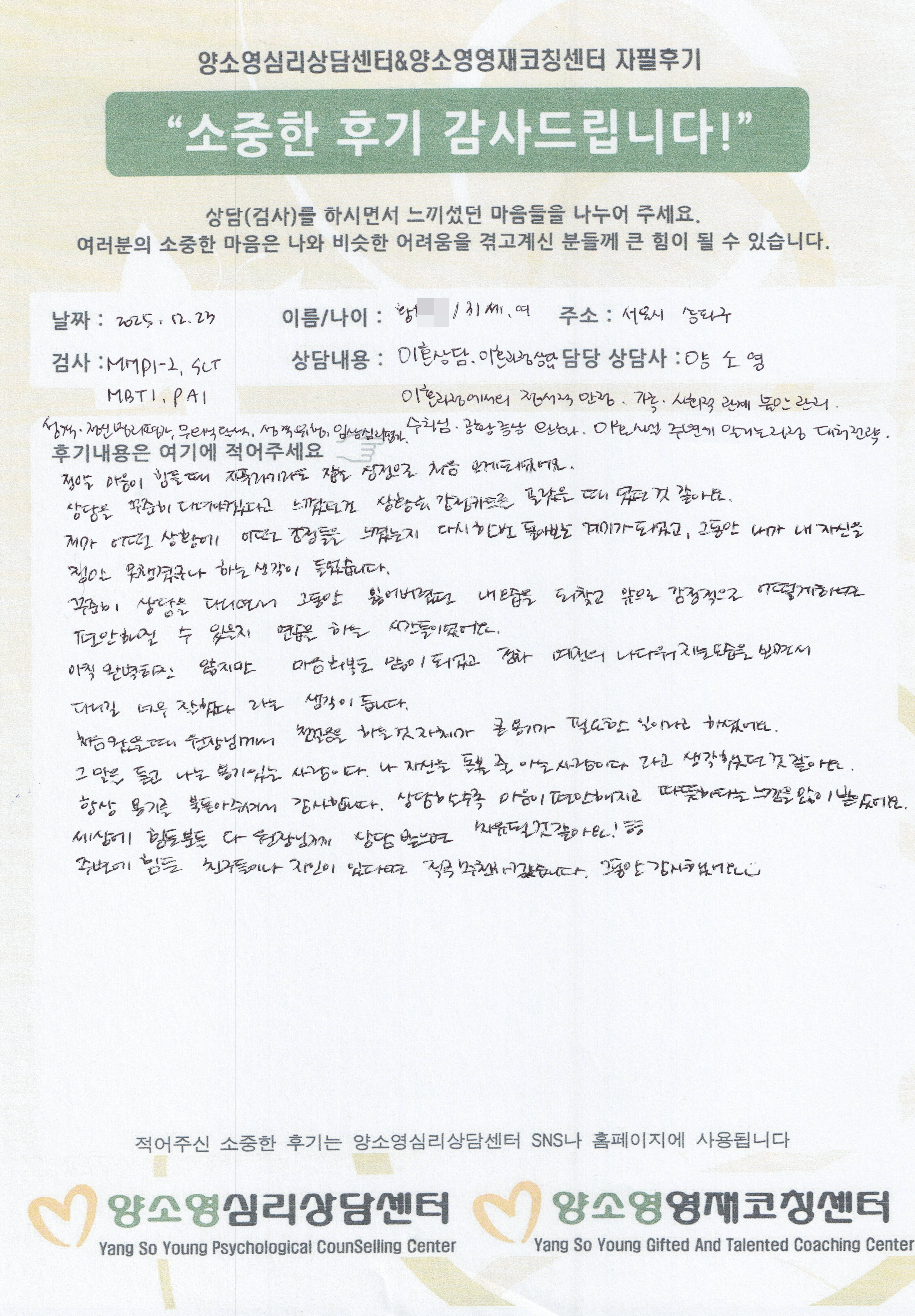 [2025.12.23] 성인심리상담 / 부부심리상담