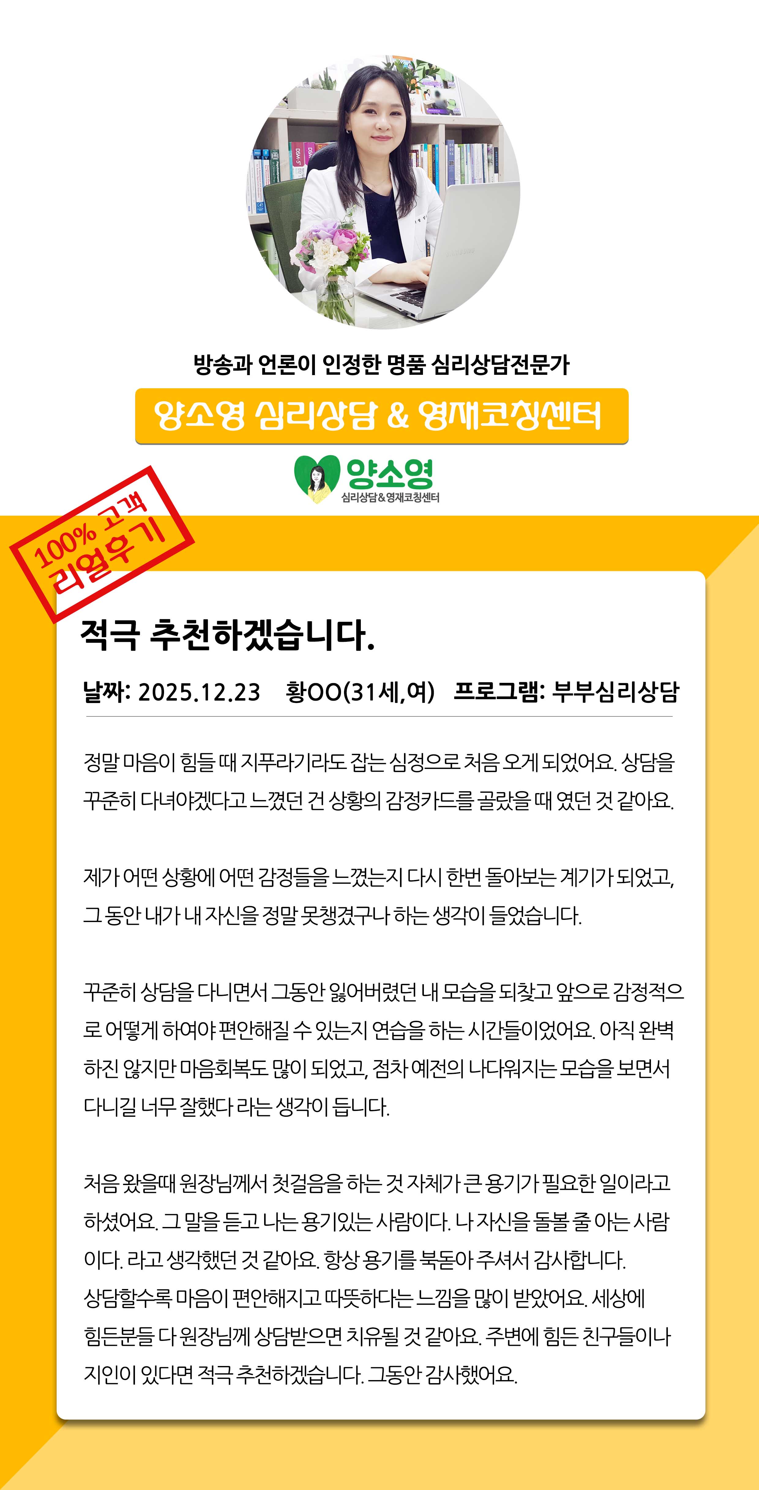 양소영 심리상담센터를 먼저 경험하신