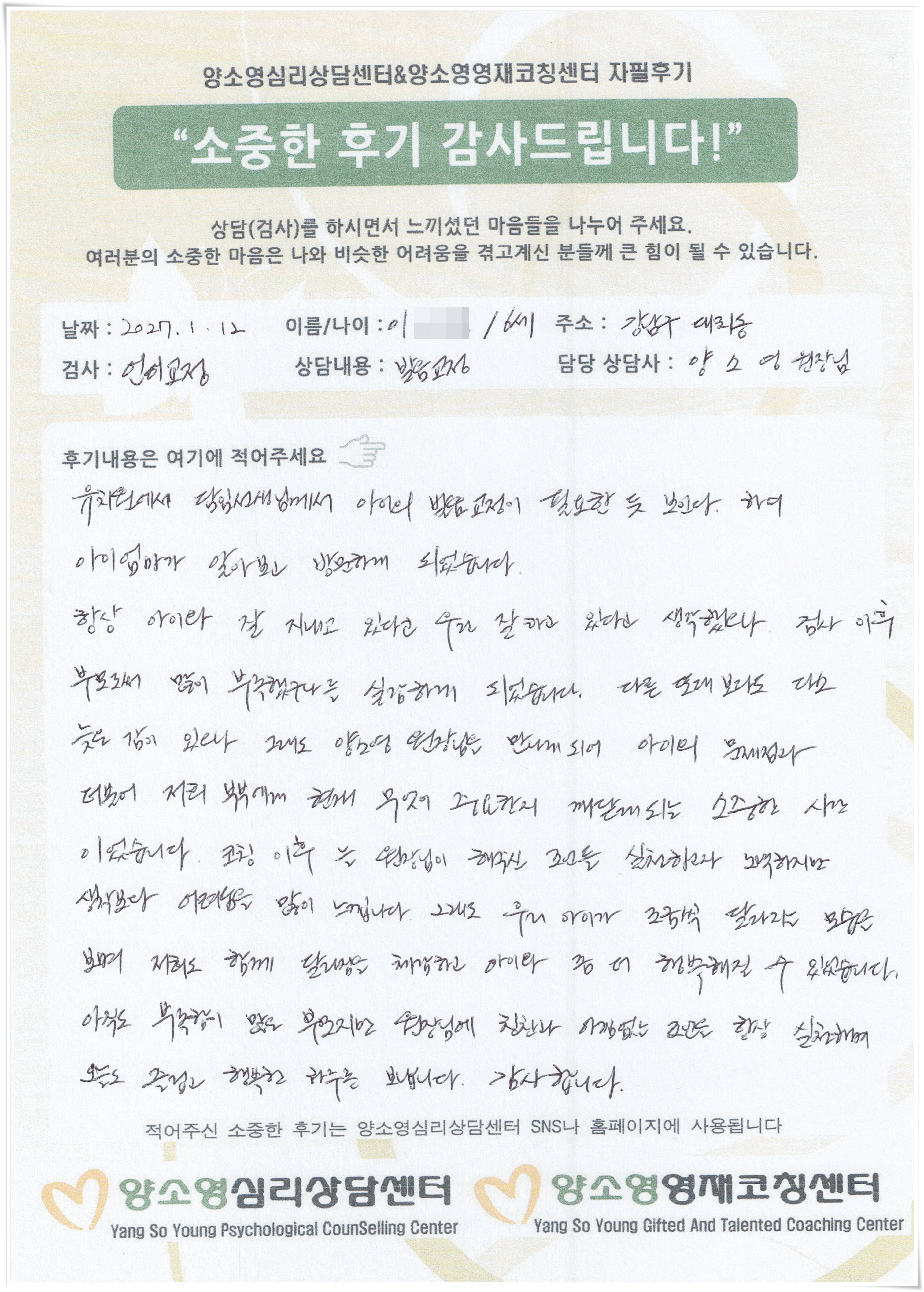 [2026.1.12] 아동심리상담 / 언어,발음교정 케어