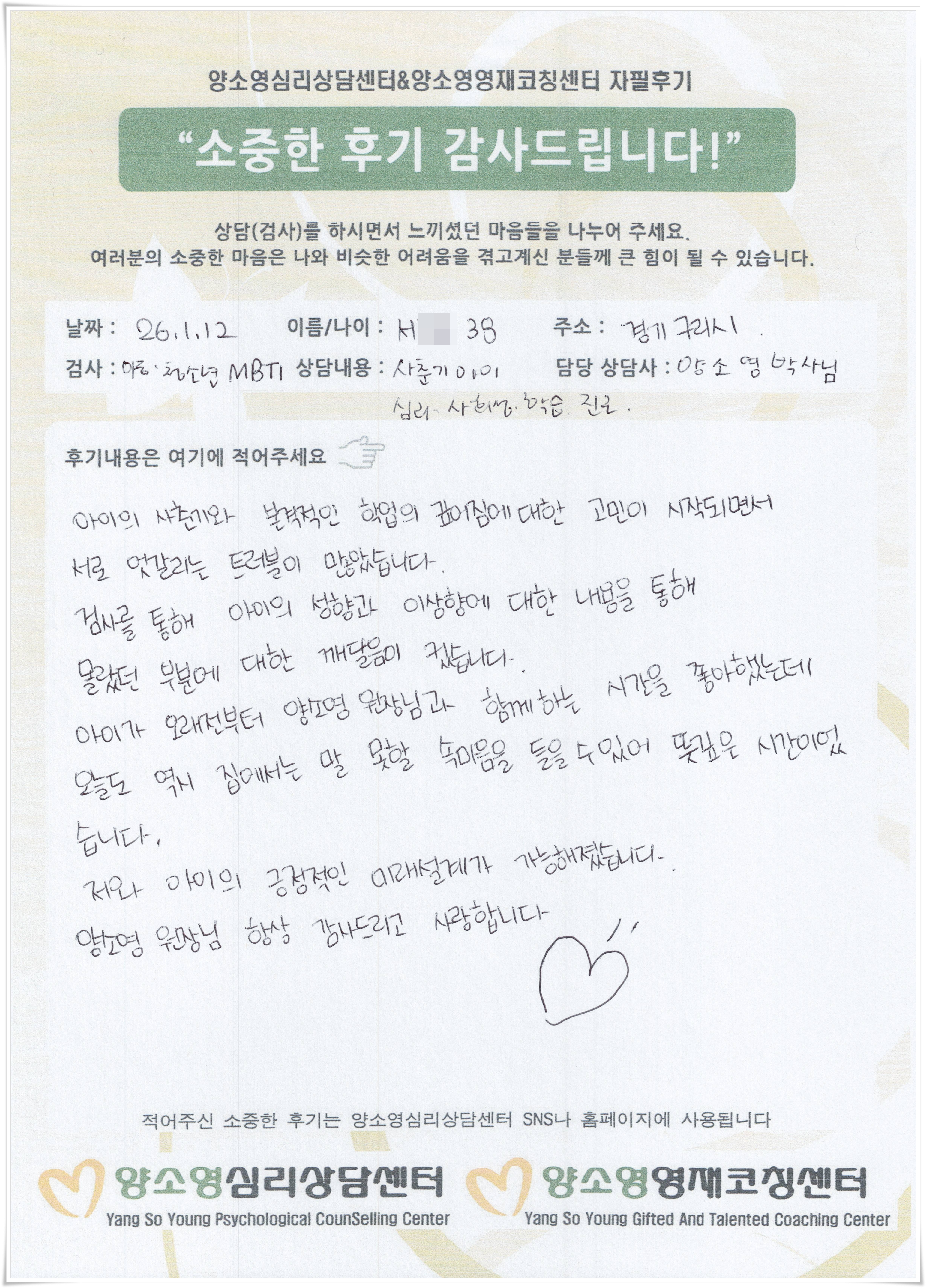 [2026.1.12] 아동심리상담 / 아동,청소년,MBTI