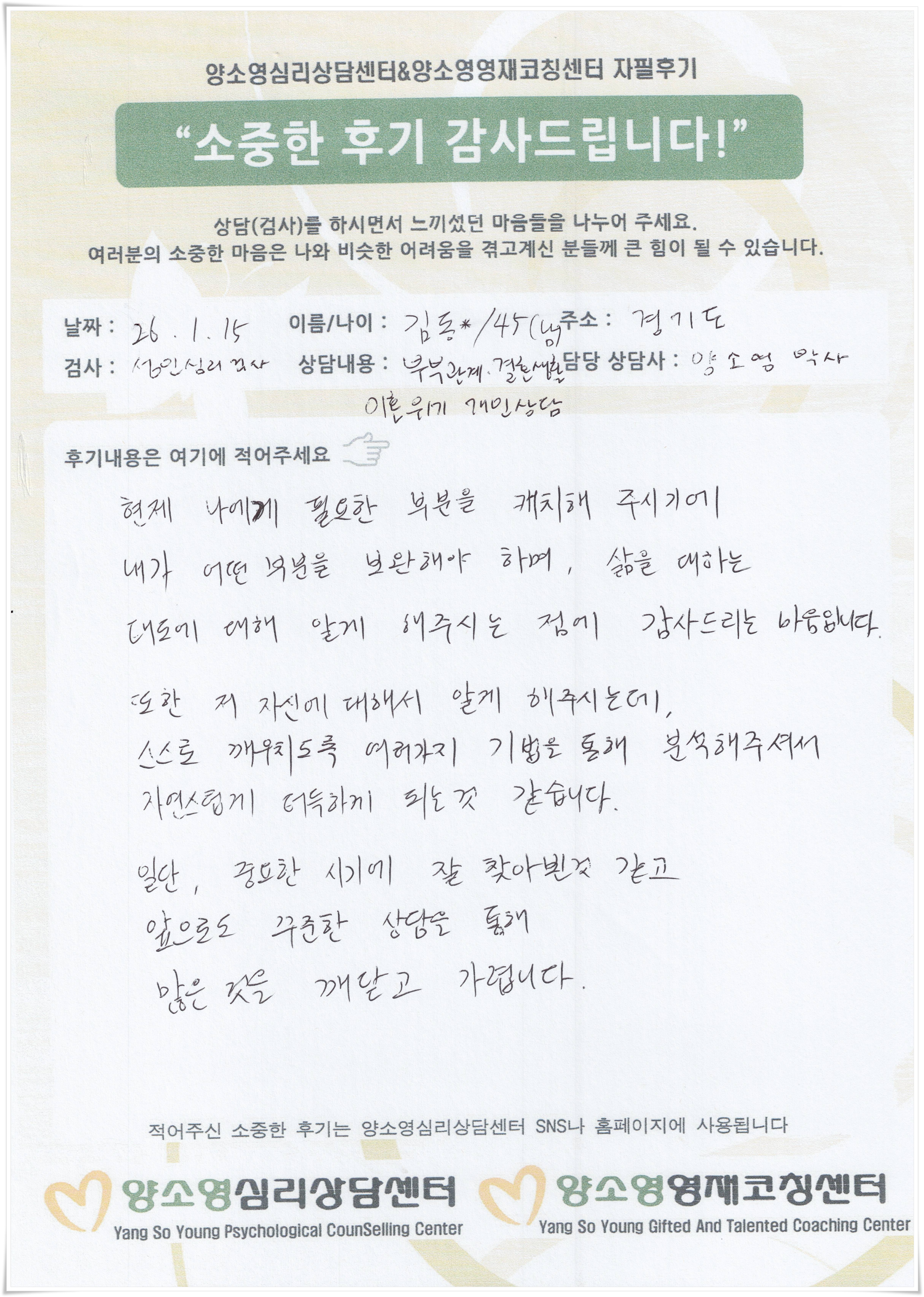 [2026.1.15] 성인심리상담 / 성인심리검사
