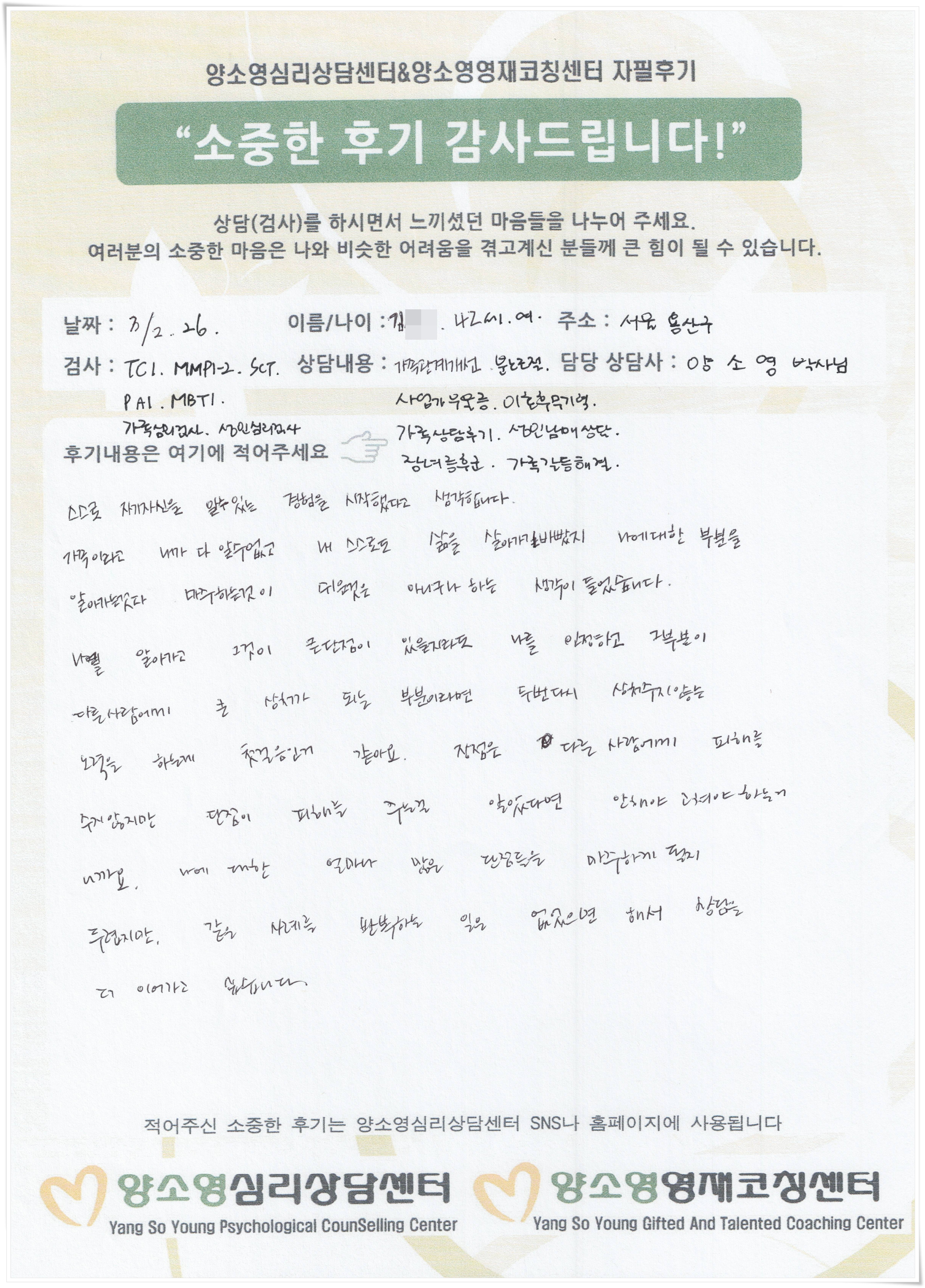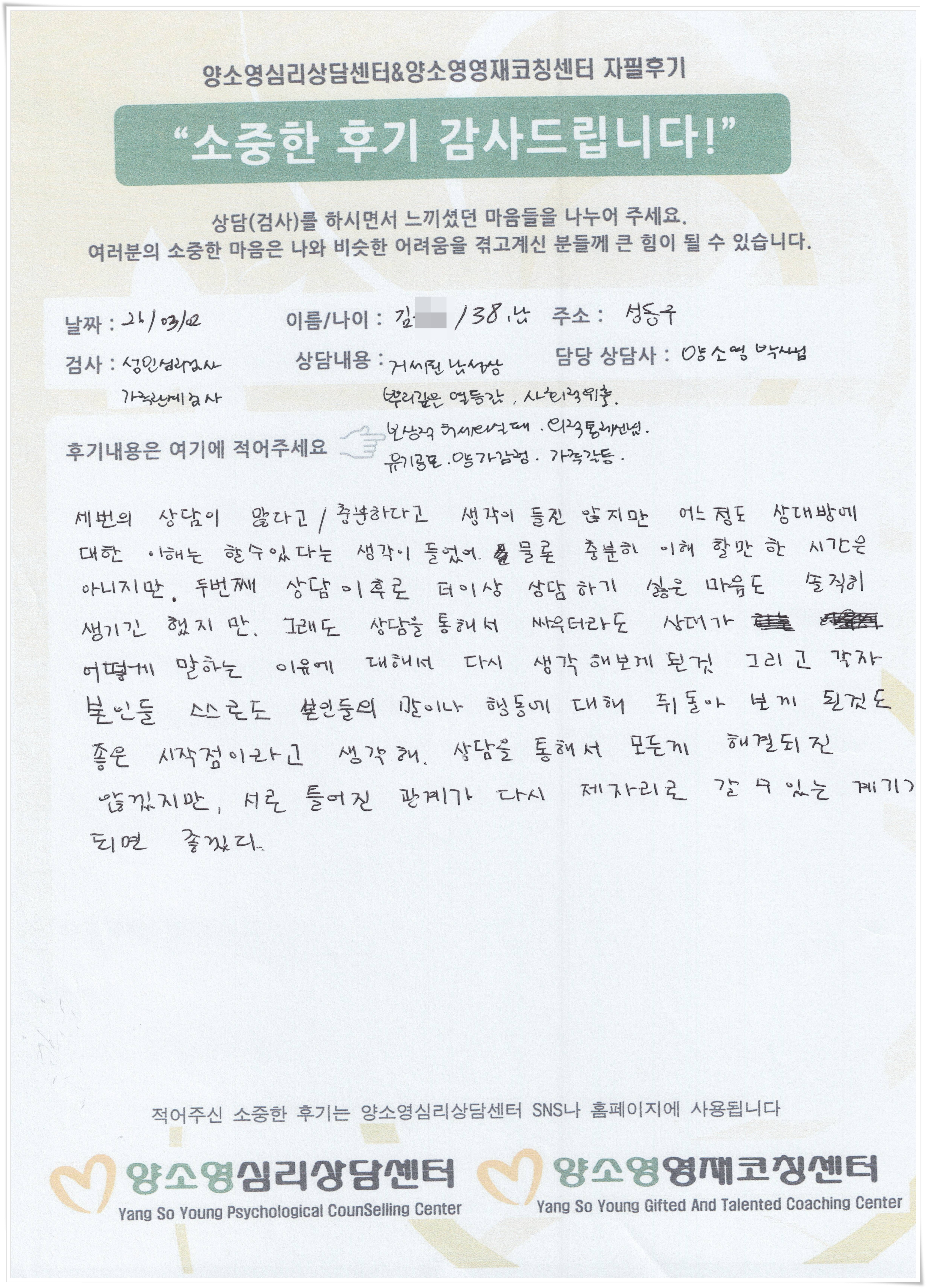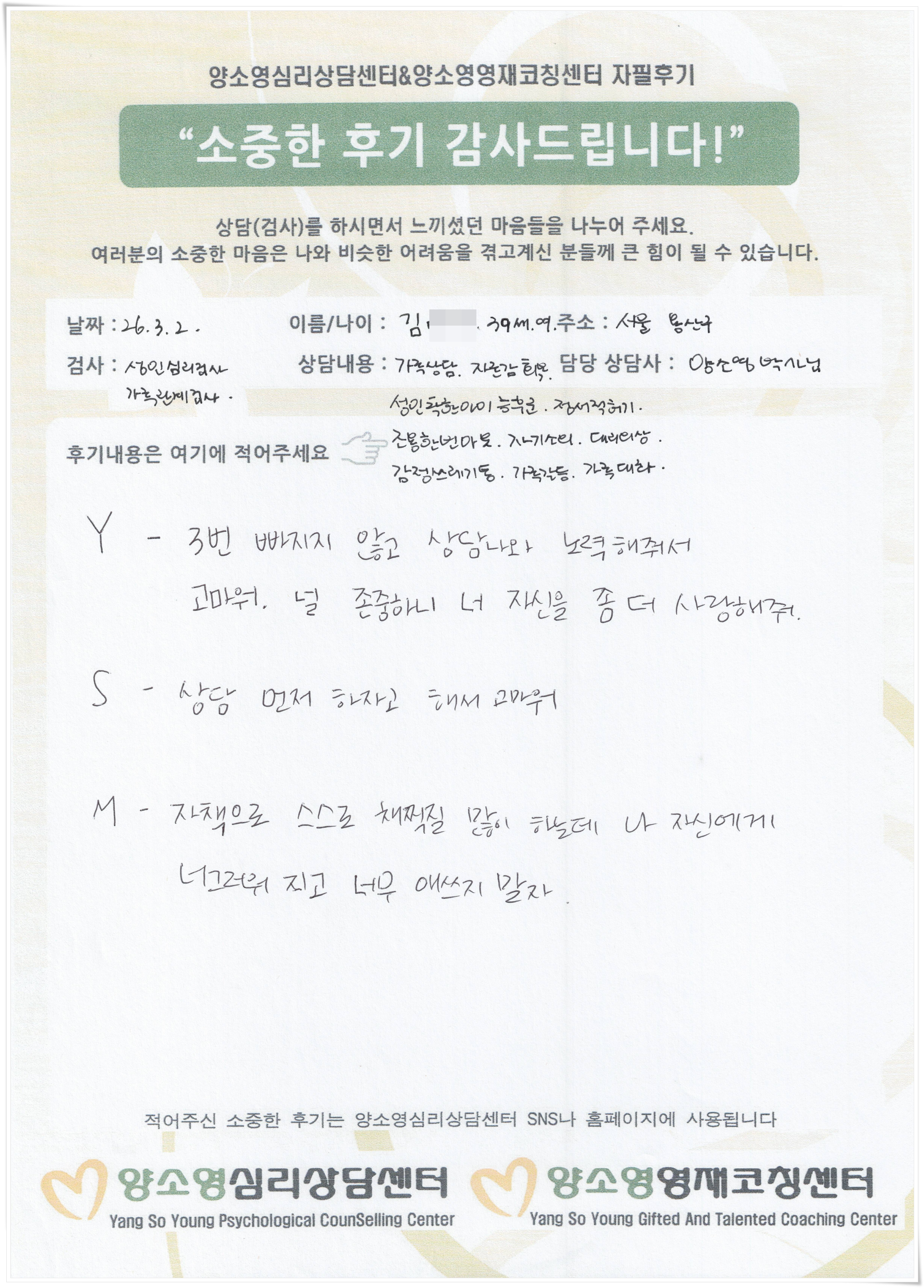 [2025.3.2] 성인심리상담 / 성인심리,가족관계검사