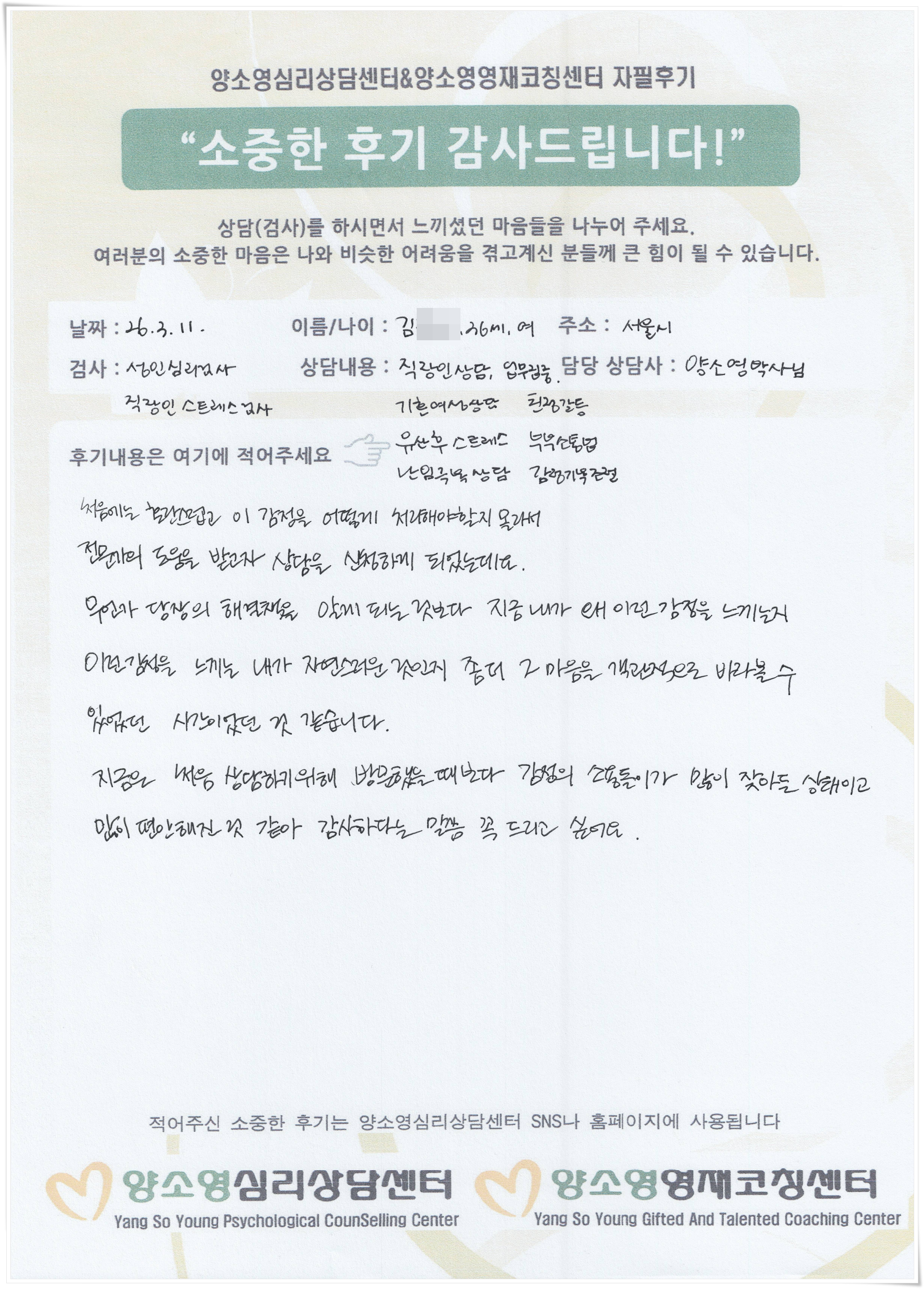 양소영 심리상담센터를 먼저 경험하신